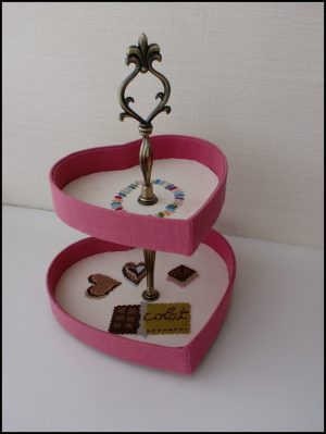 ★刺繡&カルトナージュのハートの2段トレイ★
