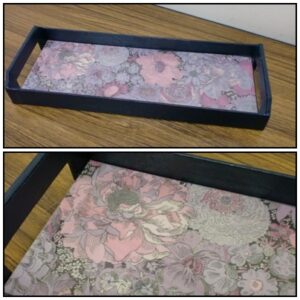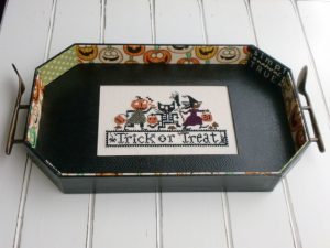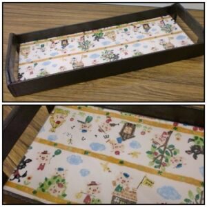 (↓数年前に作ったプレイリースクーラーのハロウィン柄で作ったトレイです)