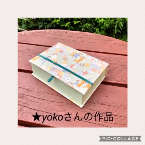 カルトナージュ-ブログ-生徒さんの作品 2020年7月8日 生徒さんの作品353 ♪ 7月レッスンスケジュール ・・・ ★ ★yokoさんのブック型の箱です 以前に作られたマグネット付きミニサイズのブック型の箱の復習作品 おうちで作られました♡ 今度はポストカードサイズで ブック型の王道タイプです♪♪ ゲイトグリーナウェイの可愛い生地に 合わせられた無地の生地がピッタリです(*^^*) ランキングに参加しています♪♪ 下の ↓ バナーをポチッと押して応援していただけたら 励みになります(*^^*) にほんブログ村