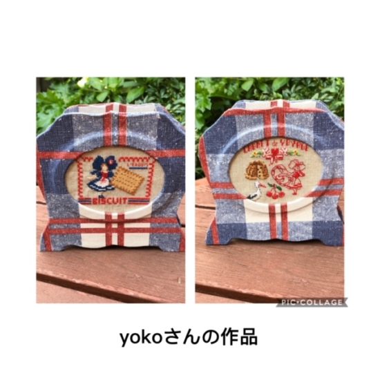 アルザスのクロスステッチとチェック柄の壁紙の組み合わせ♪