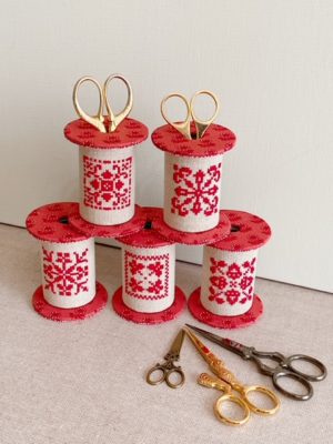 赤糸の素敵な刺繍で作られた 糸巻き♬