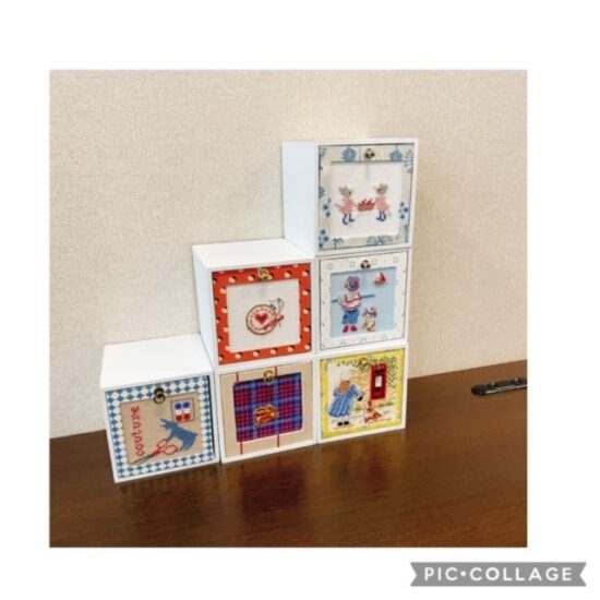 カルトナージュ-クロスステッチ-テーブル小物-ブログ-刺繍-生徒さんの作品 2024年3月11日 生徒さんの作品636 ☆ 4月レッスンスケジュール ・・・ ★ 手芸のお店 亀島さんでのレッスンにて 木枠を使った引き出しBOXです♪ 皆さんの作品を 合わせて飾るとこんな素敵な棚に~(*^^*) お一人ずつご紹介していきますね♡ ランキングに参加しています♪ バーナーのクリックで応援宜しくお願い致します(*^^*) ↓ にほんブログ村 お教室用のインスタグラム★