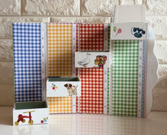 内側の正方形の箱の生地もギンガムチェックの可愛さにピッタリですね!